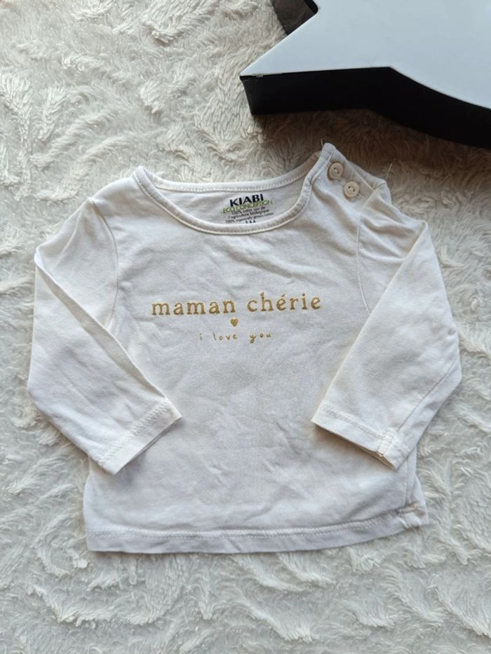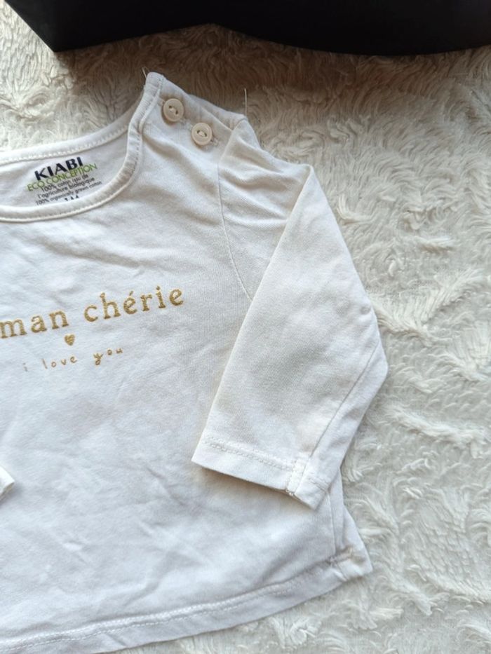 Lot de 2 tee shirt manches longues Fille 1 mois Maman Papa dad Kiabi Eco conception 100% coton bio - photo numéro 14
