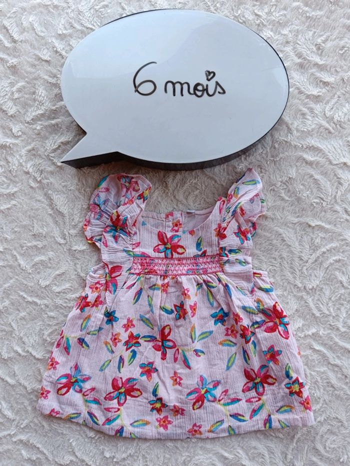Robe courte été ou tunique longue Fille 6 mois Fleurs 100% coton - photo numéro 8