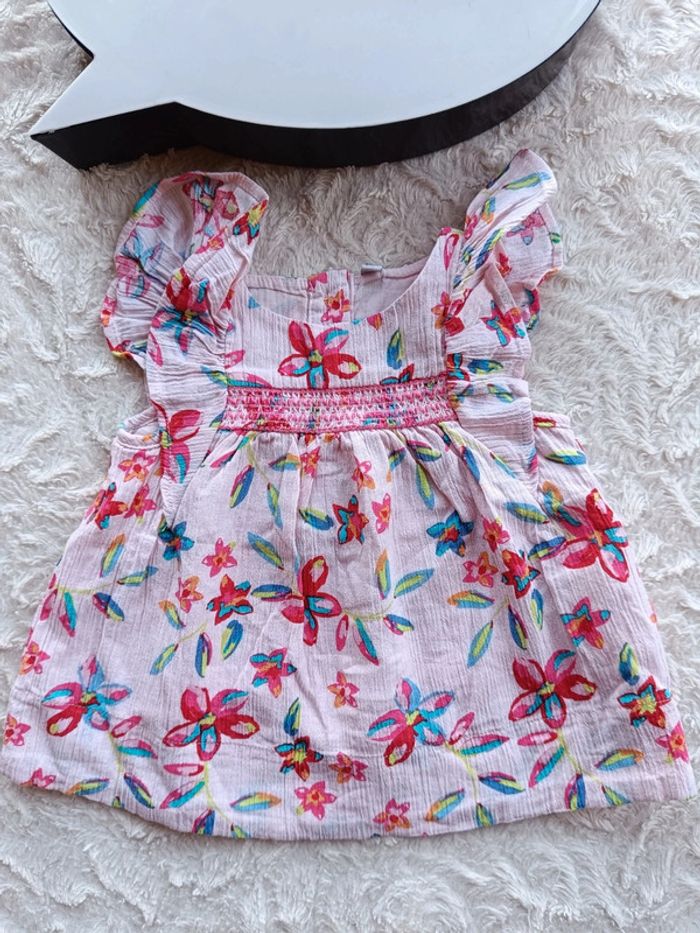Robe courte été ou tunique longue Fille 6 mois Fleurs 100% coton - photo numéro 1