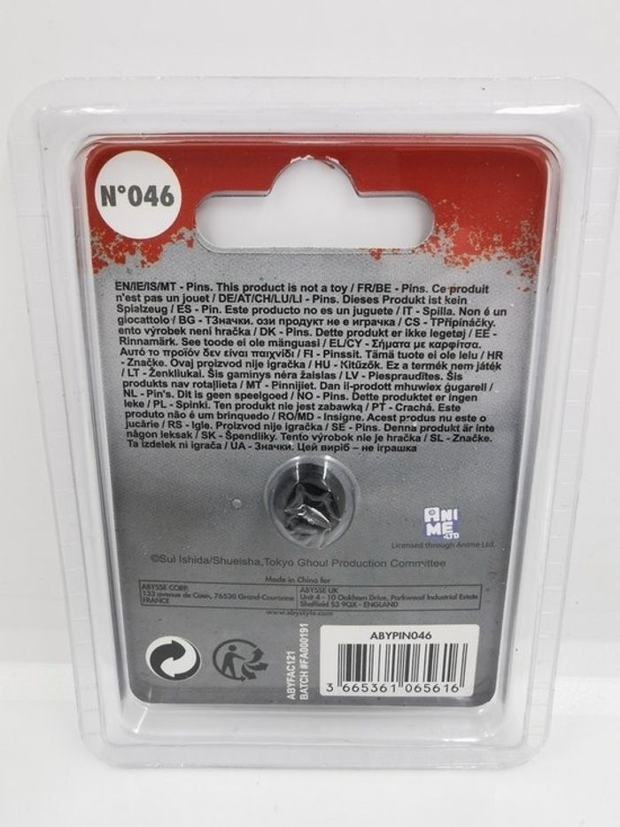 Avec ce pin's Tokyo Ghoul par ABYstyle, l'emblématique masque de Ken Kaneki vous accompagnera dans tous vos déplacements. - Pin's en métal de haute qualité - 100 % officiel : copyright et logo gravés au dos du pin's - Dimensions : H. 2,7 cm x L. 3 cm - Article neuf et emballé. - Colis soigneusement emballé et protégé.