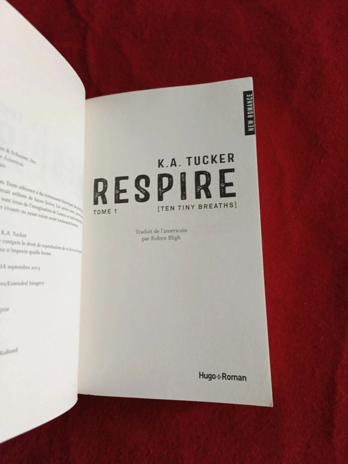 Respire Tome 1 " K.A Tucker " New Romance " Hugo Roman "