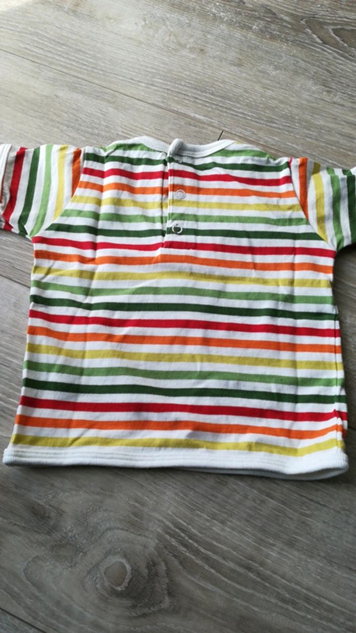 Tee shirt manches courtes à rayures colorées, pressions dos #pegouille_sixmois
