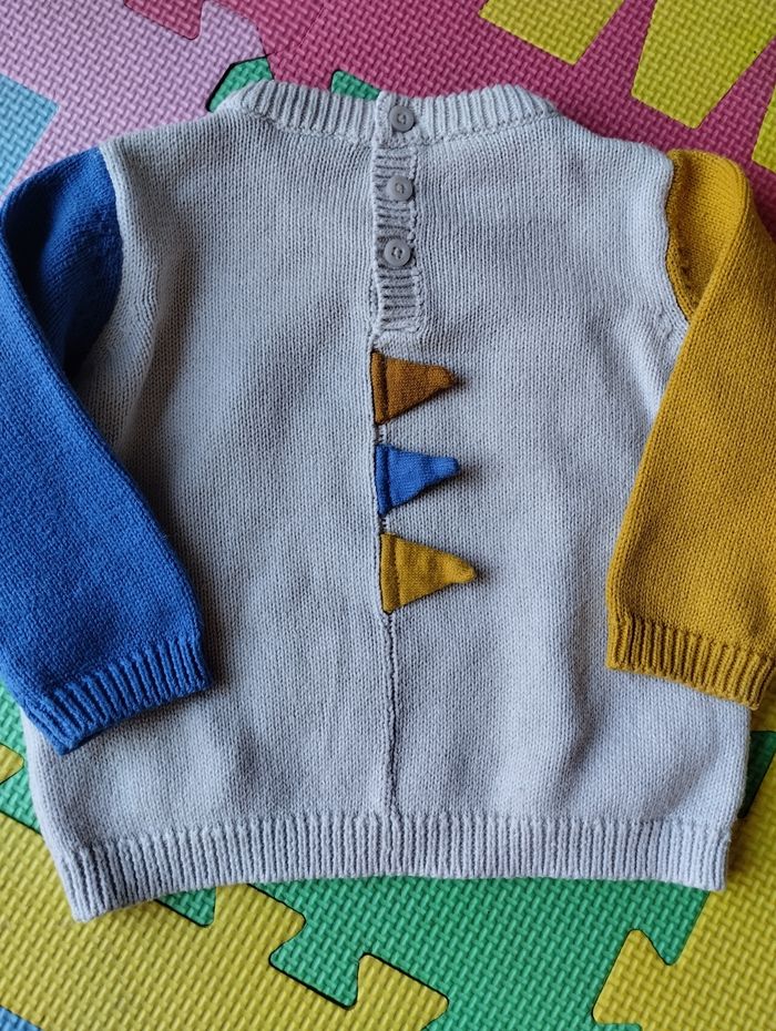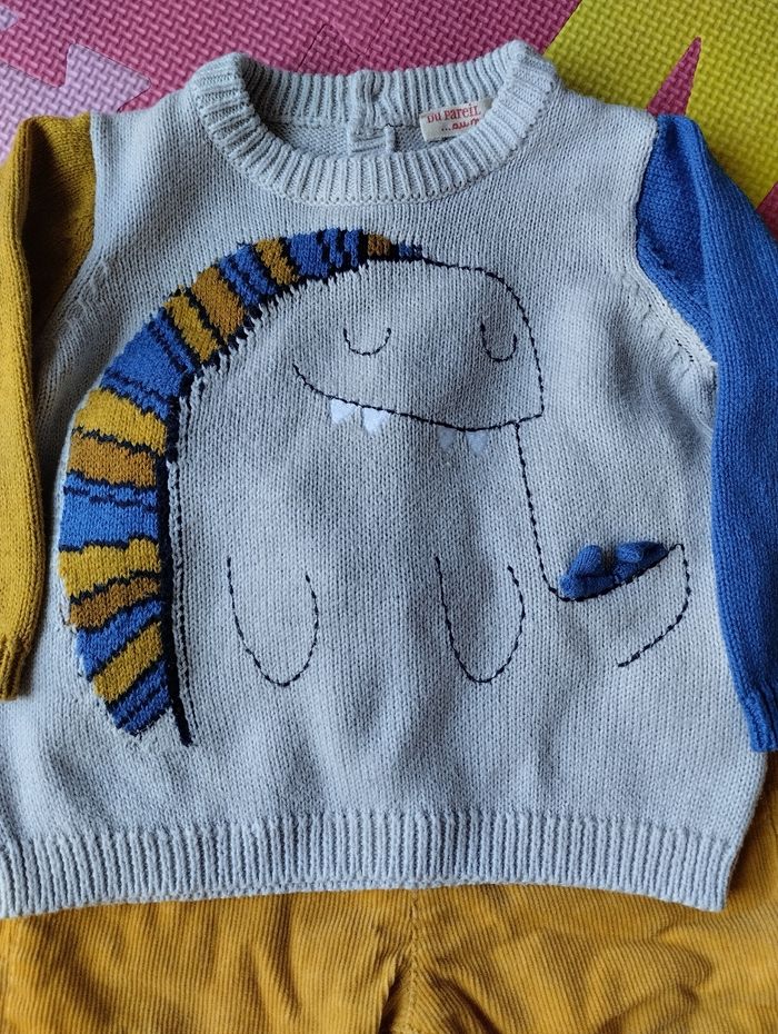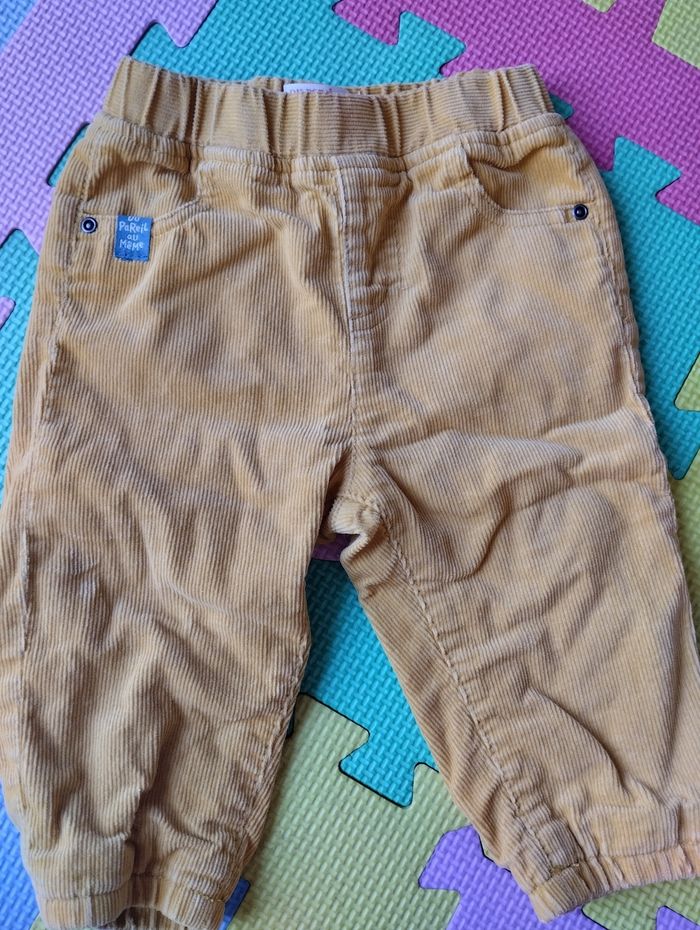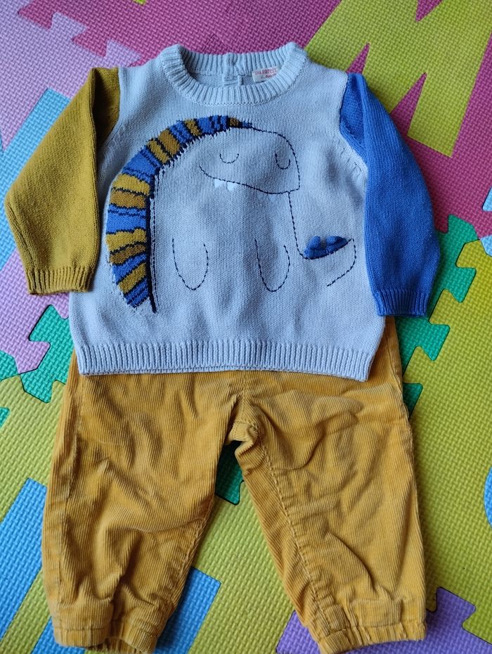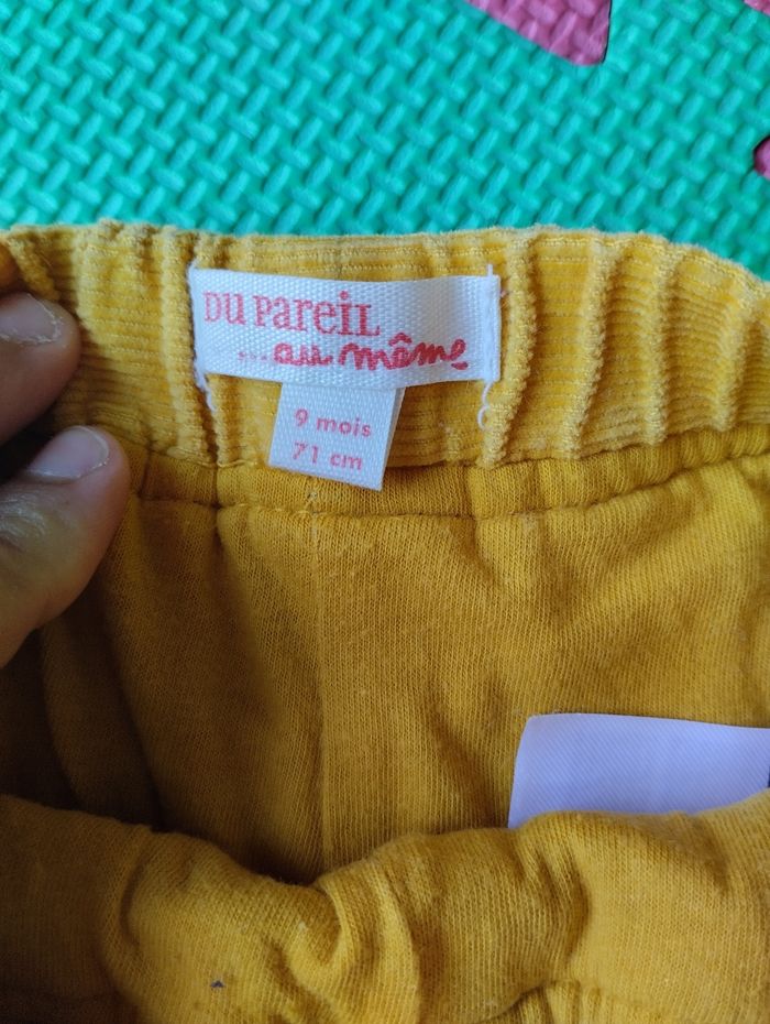 Ensemble : pantalon doublé et pull assorti, boutons au dos. Taille 9 mois, 71 cm. Du pareil au même. Très bon état.