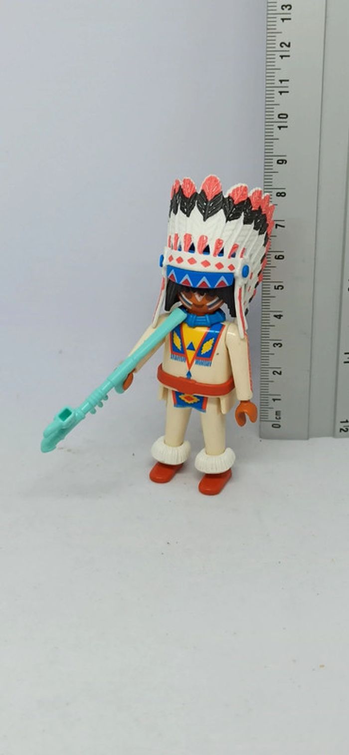 Homme indien chef avec grande coiffe et accessoire bleu playmobil