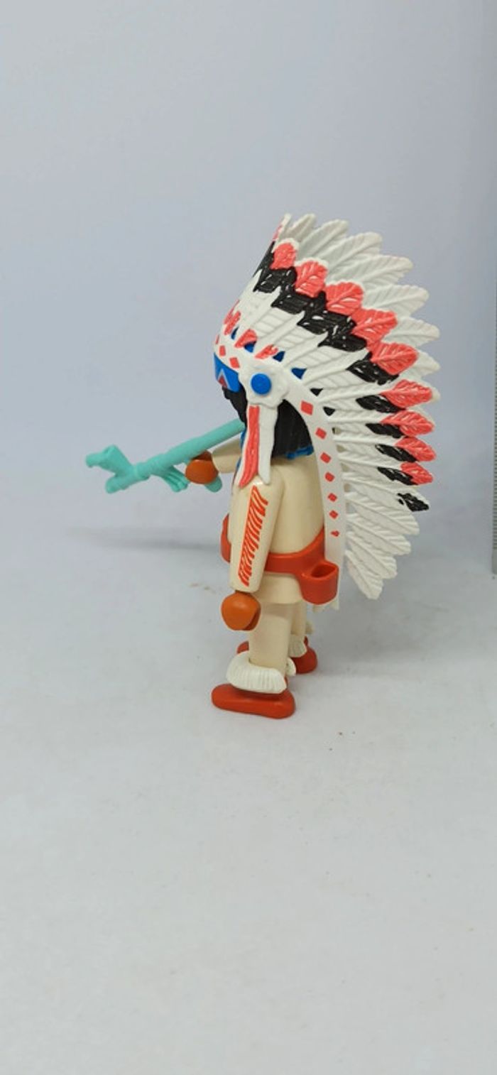 Homme indien chef avec grande coiffe et accessoire bleu playmobil - photo numéro 4