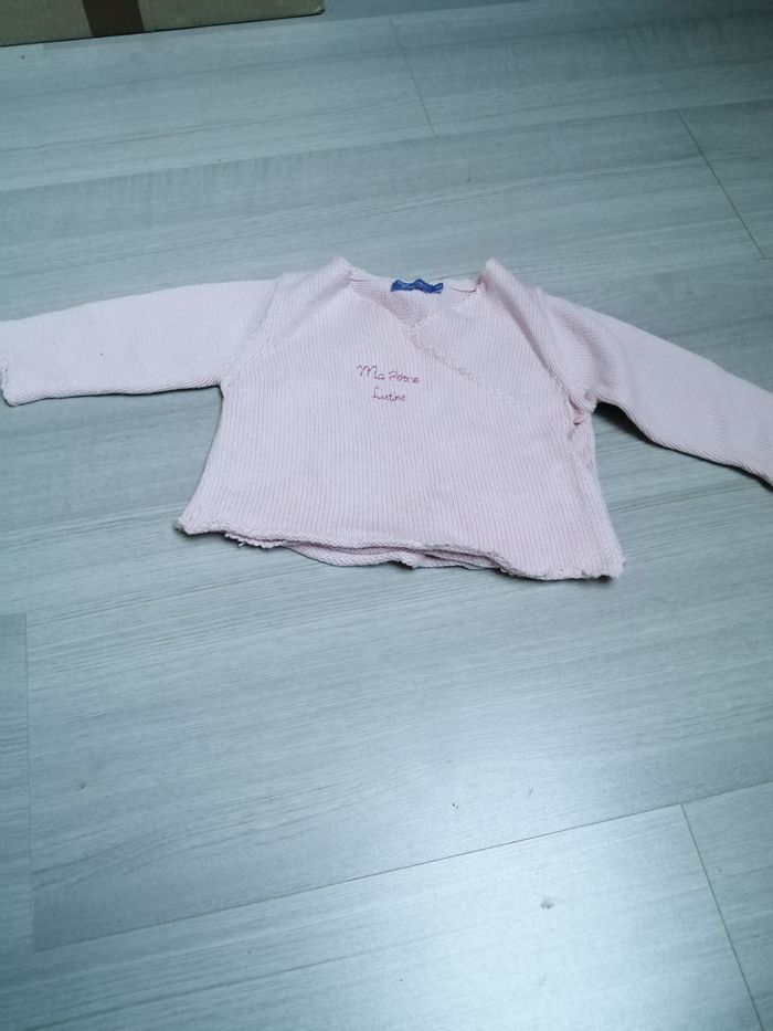 Je vends un gilet cœur croisée rose clair, taille 6 mois. De la marque tout simplement. Très bon état Maison non fumeur Envoi rapide et soigné