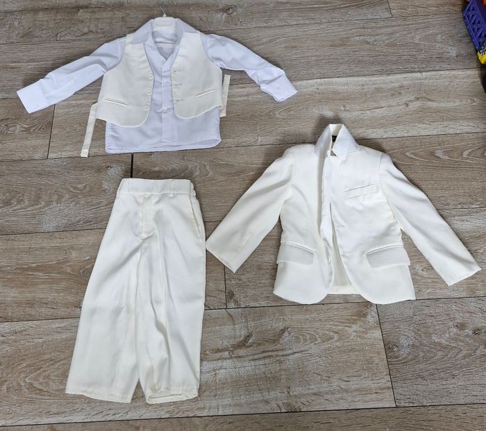 Costume de cérémonie garcon blanc chemise blanche taille 12 mois en tbe Chemise blanche Gilet / neuf. Veste et pantalon