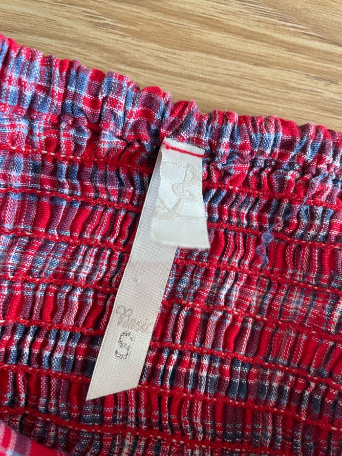 Robe bustier courte été Stradivarius Taille S Ceinture amovible Poches Fermeture éclair sur le côté Rouge imprimée bleu et blanc