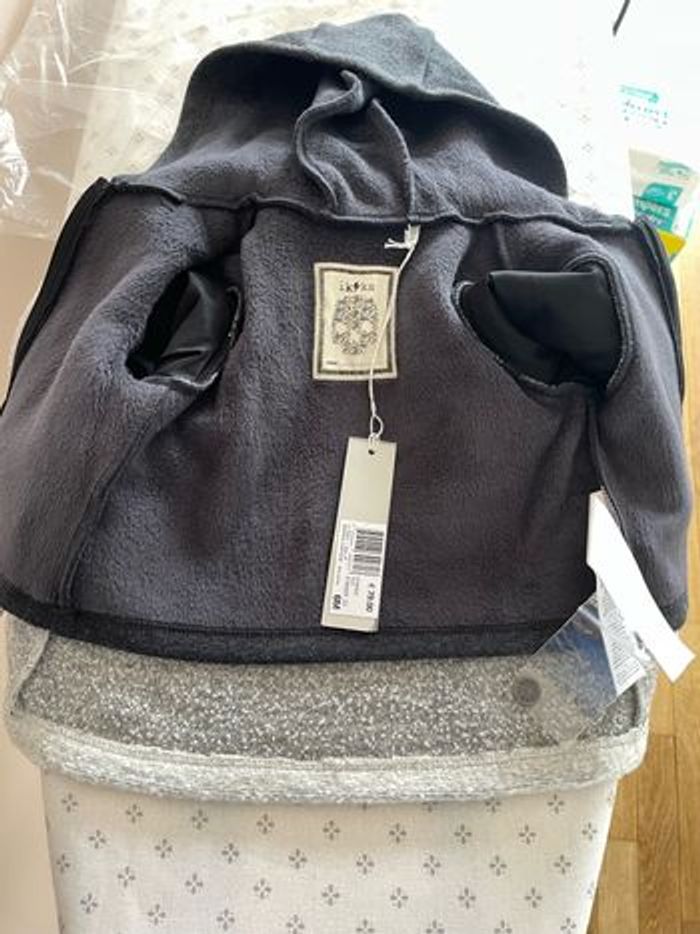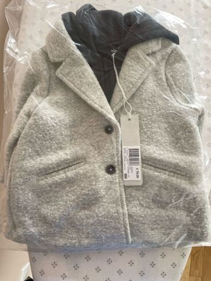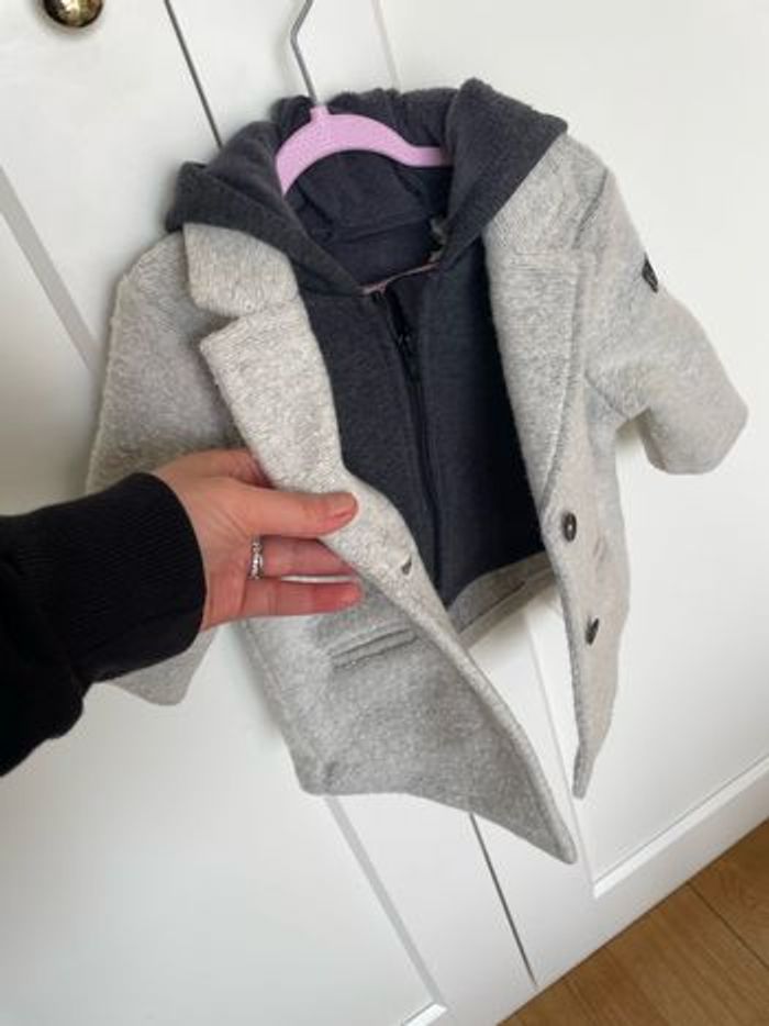 Petit manteau gris IKKS à col tailleur avec parmenture à capuche gris foncé en molleton Taille 6 mois Bebe fille Neuf, sous blister, avec étiquette Pour être au chaud cet automne-hiver
