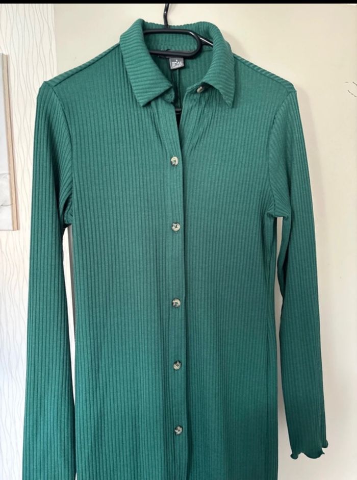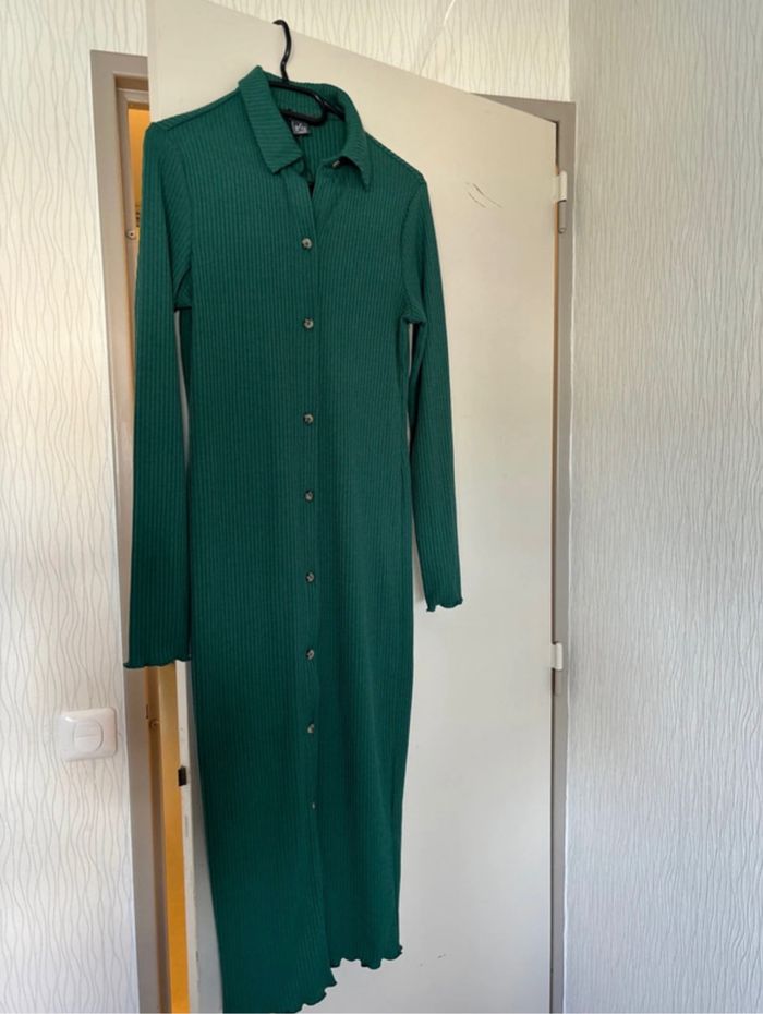 Robe longue côtelé verte , peu se porter ouverte ou fermée , c est une taille s de primark 38/40