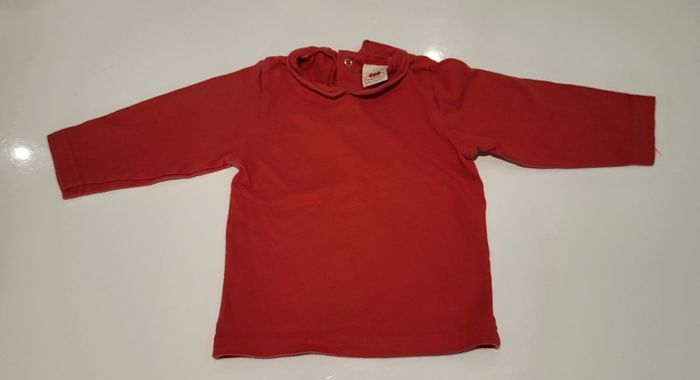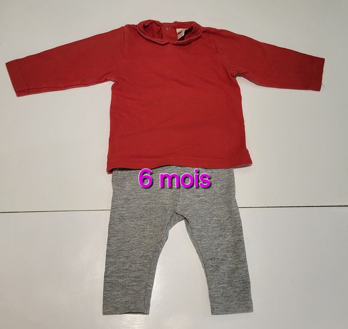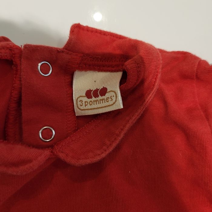 Très bon état cet ensemble qui se compose d'un t-shirt manches longues rouge avec petit col 100% coton de chez 3 pommes