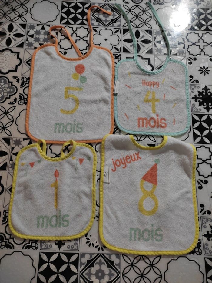 Lot de 4 bavettes neuve de ,1 a 8 mois pas de tâche