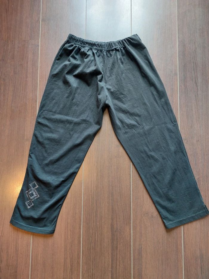 #laetitia8110femmeT42 Legging noir avec des strass sur le bas d une jambe. Longueur 3/4. En bon état, juste la couleur d un côté au niveau de l élastique qui s est enlevée un peu (photo 3). Taille 42/44.
