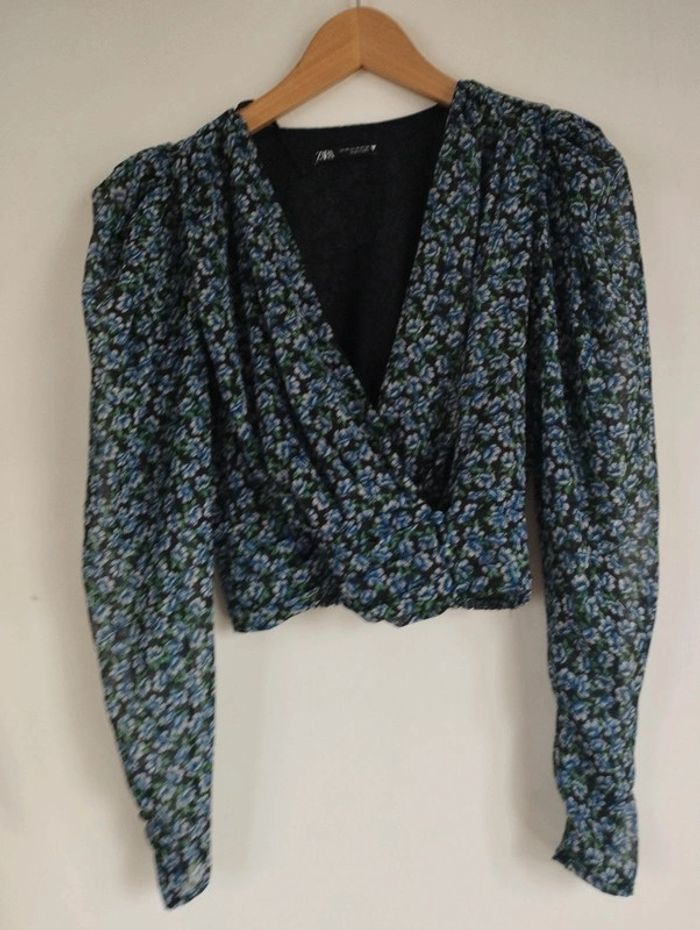 News à fleurs bleues Coupe cache-cœur Zara taille XS