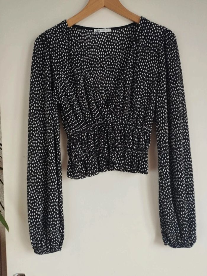 Blouse noire à pois blanc élastique à la taille coupe cache-cœur Zara taille S