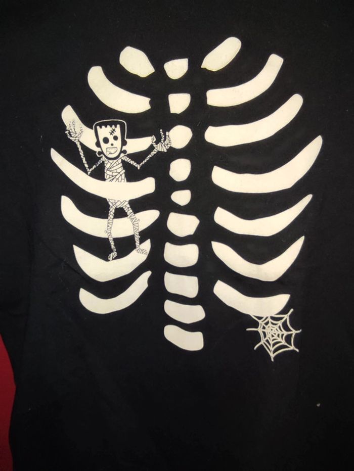 T-shirt noir manches longues motif squelette fluorescent dans le noir in extenso taille 10 ans