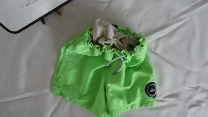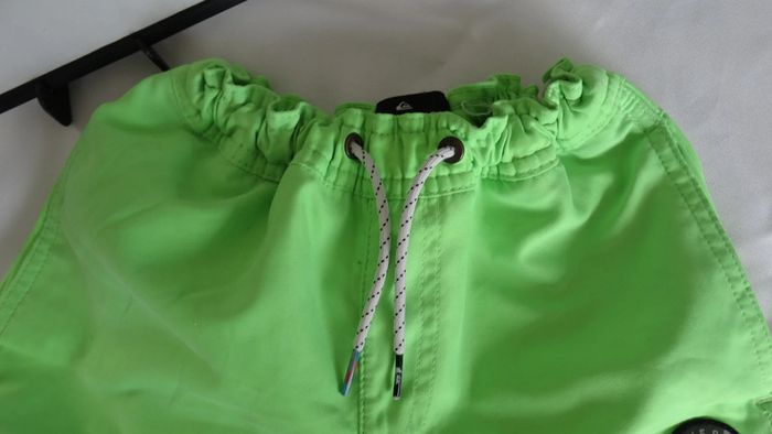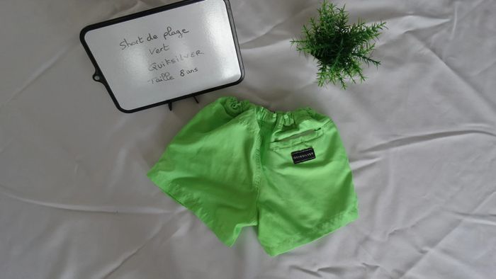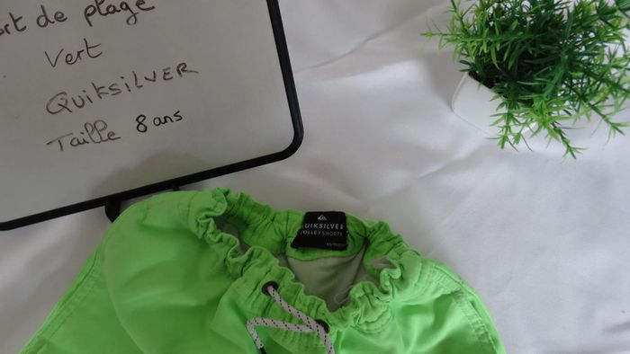 Short de plage vert QUIKSILVER Serrage un peu abimé mais ne change rien pour tenir à la taille + un lien de serrage Taille 8 ans