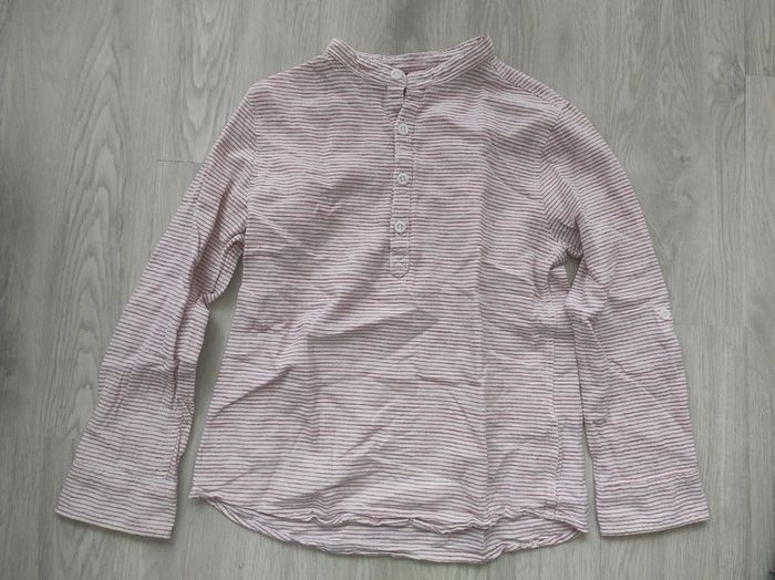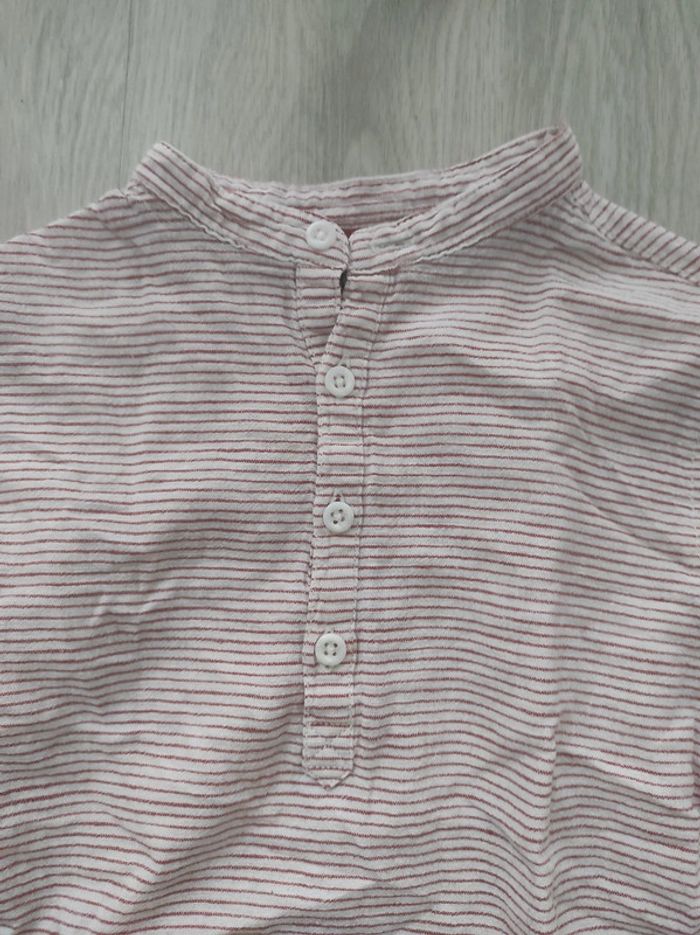Rouge et blanc. Col mao. Manches retroussable en manches 2/3. Bon état à très bon #canelle0garcon8ans