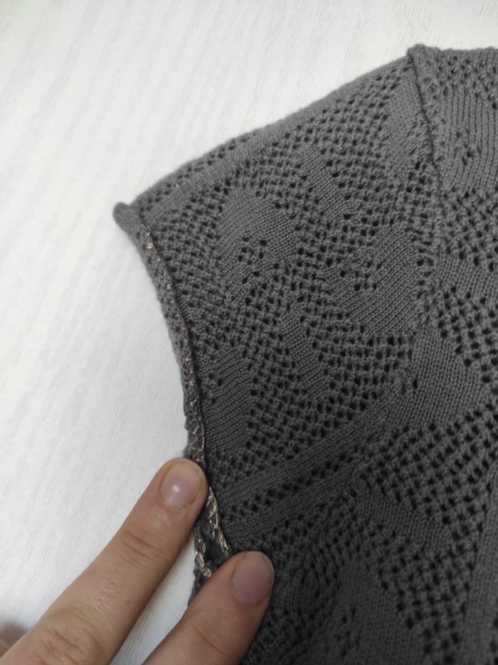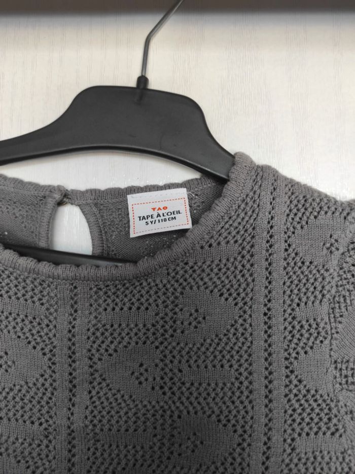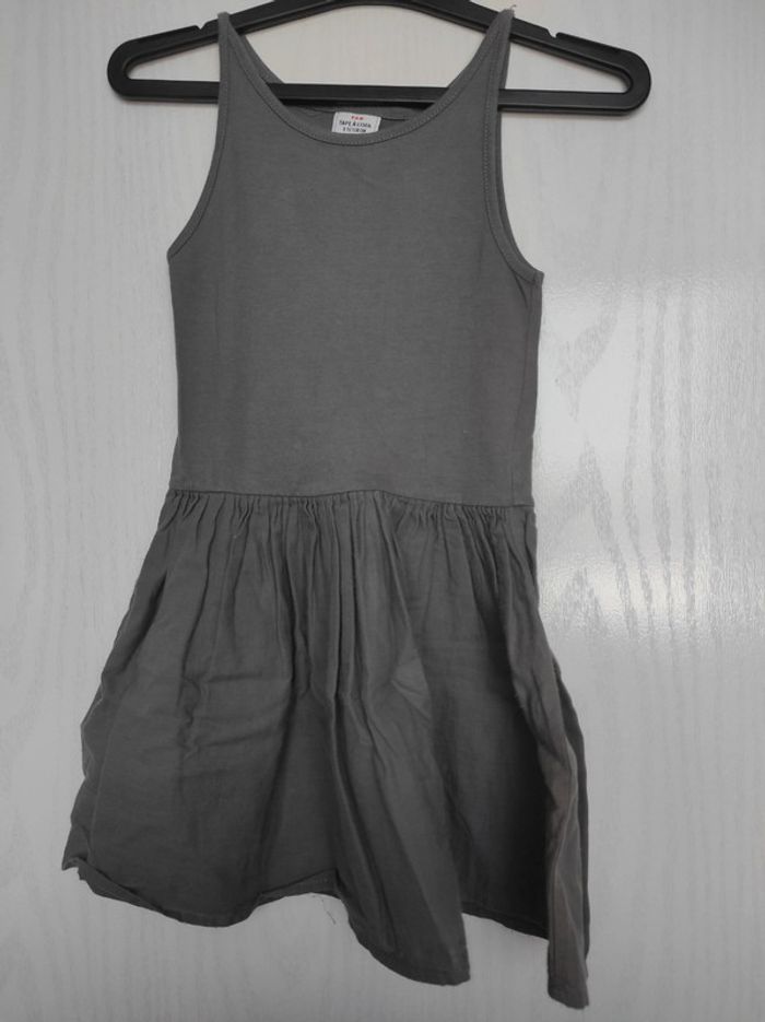 Robe gris souris foncé en 2 parties séparables constitué d'un fond de robe et d'un haut ajouré avec liseré doré discret aux bordures. Taille 5 ans ou 110 cm. Très bon état. #canelle0fille5ans