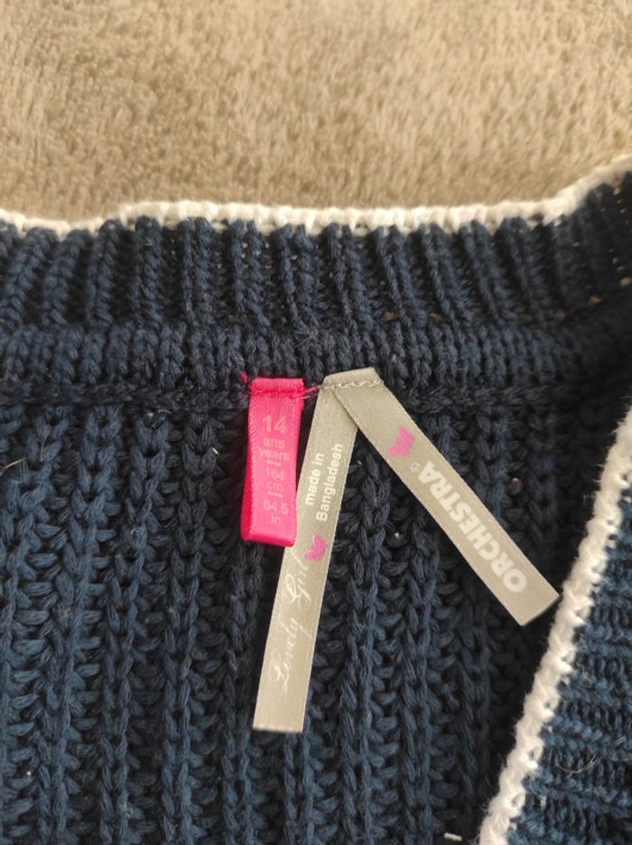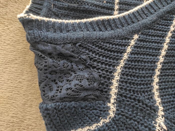Marine et blanc avec empiècements dentelle aux épaules. Peut correspondre à un xs. Très bon état. #canelle0fille14ans #canelle0fillexs