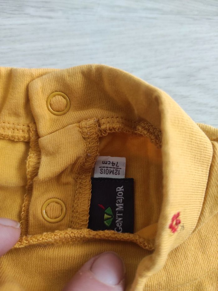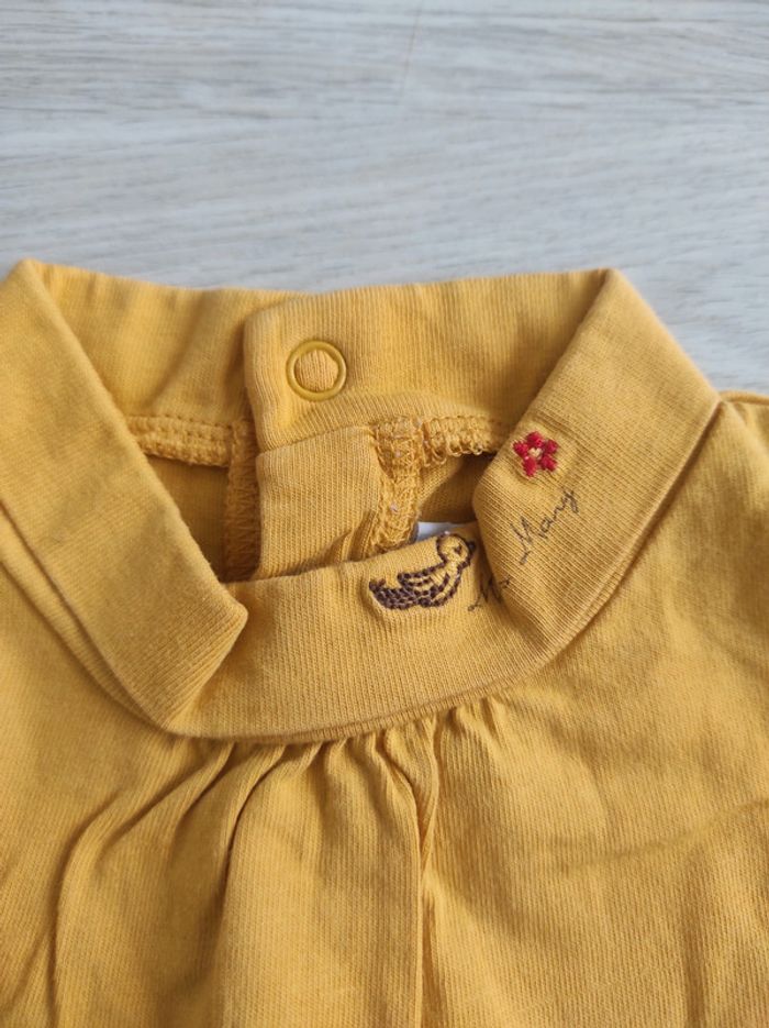 Sous-pull jaune avec patch au bas et détail broderie sur le col. Pressions dans le haut du dos. Taille 12 mois ou 74cm. Bon état à très bon. #canelle0fille12mois #fille12mois