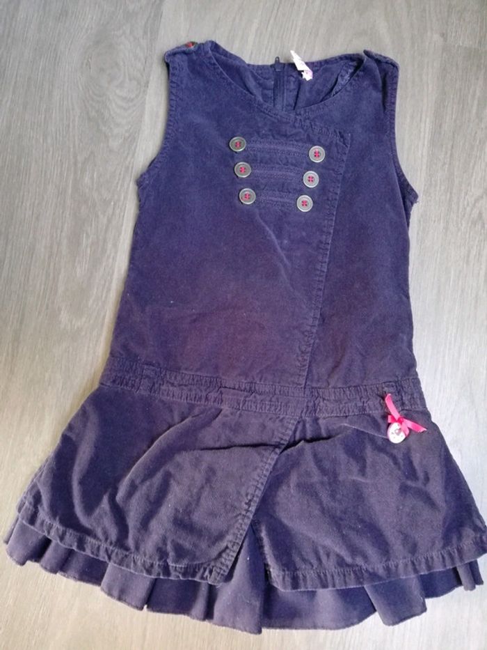 Robe velours fin violet très foncé doublée avec détails rouges. Fermeture éclair au dos. Taille 6 ans. Très bon état. #canelle0fille6ans #fille6ans