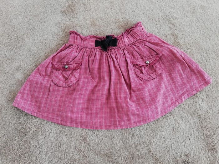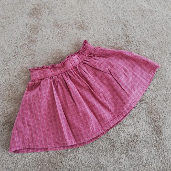 Jupe à carreaux tons rose avec noeud décoratif à la taille. Petites poches sur le devant. Taille élastiquée. Belle ampleur. Taille 24 mois ou 86 cm. Taille plutôt grand je trouve. Bon état à très bon. #canelle0fille2ans #fille2ans #fille24mois