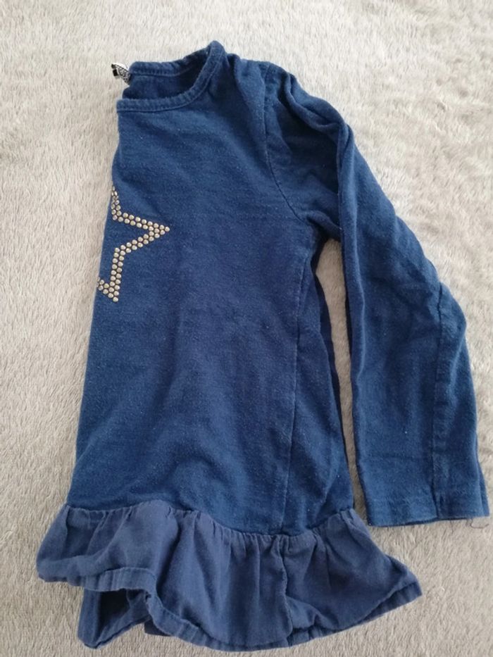 Tee-shirt manches longue marine volanté dans le bas avec étoile dorée. Taille 4 ans ou 104 cm. #canelle0fille4ans #fille4ans