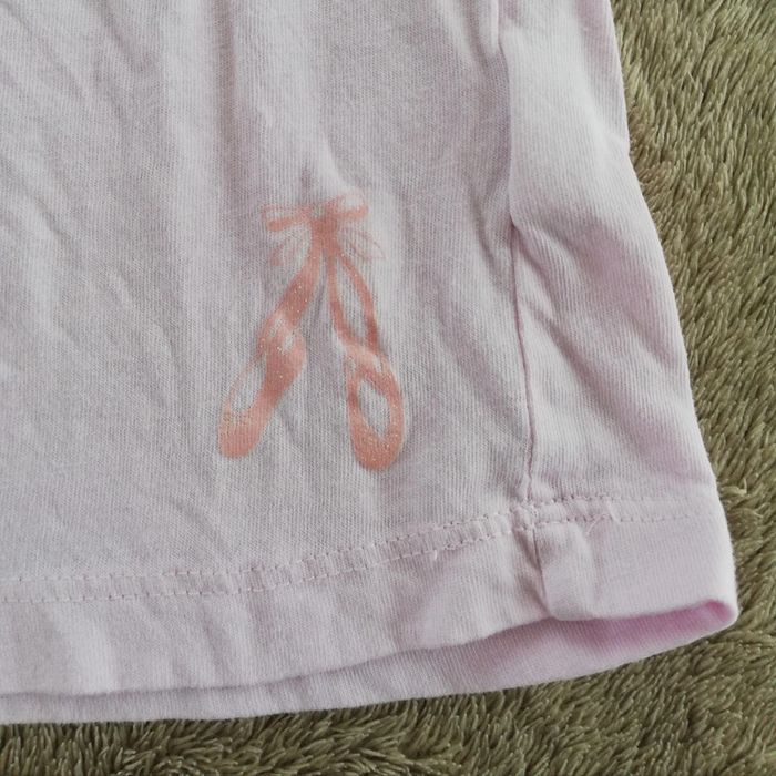 Tee-shirt rose violacé avec petit imprimé de chaussons de danse discret au bas. Taille 4 ans ou 104 cm. #canelle0fille4ans #fille4ans