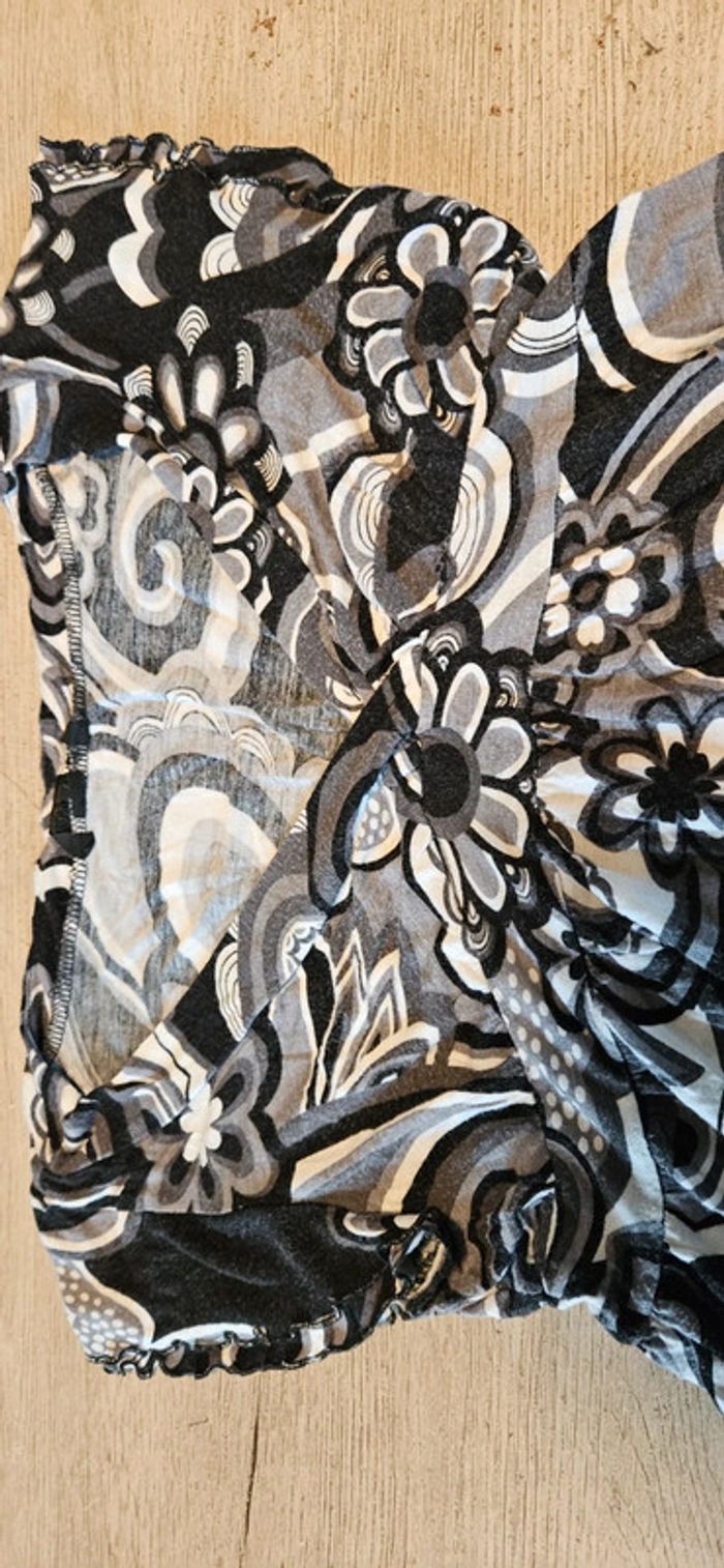 Blouse cache coeur, manches courtes, noir/gris/blanc, H&M, taille M - photo numéro 5