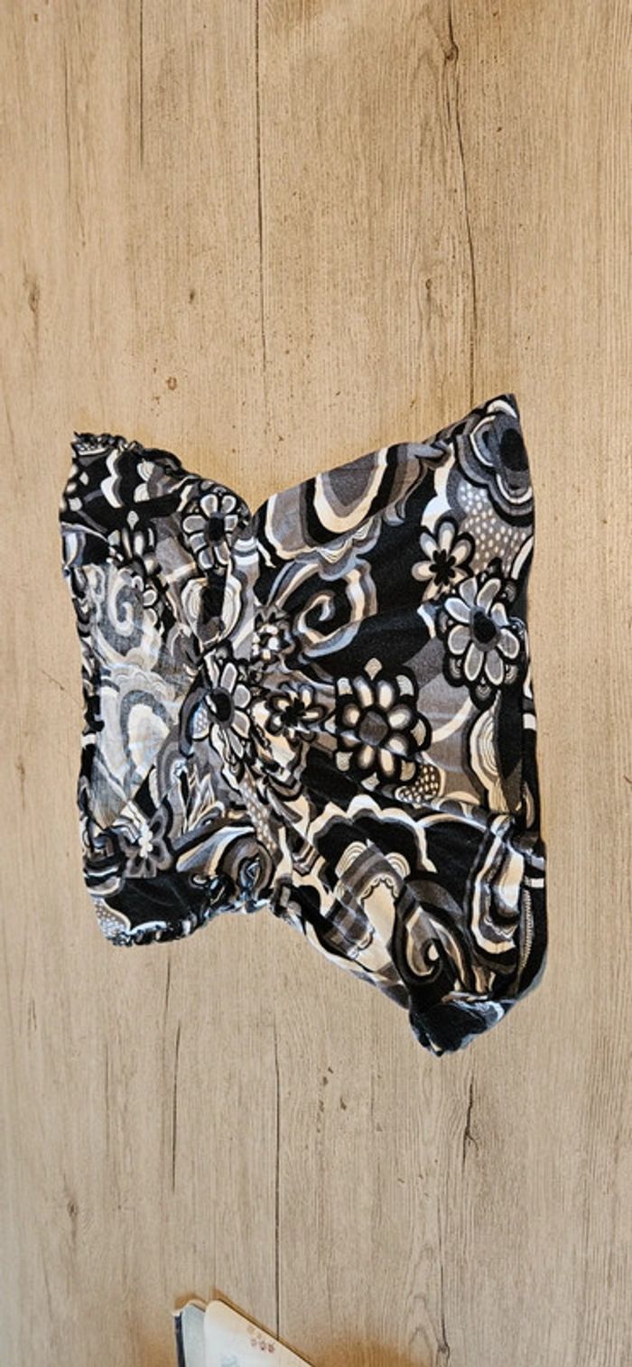 Blouse cache coeur, manches courtes, noir/gris/blanc, H&M, taille M - photo numéro 1