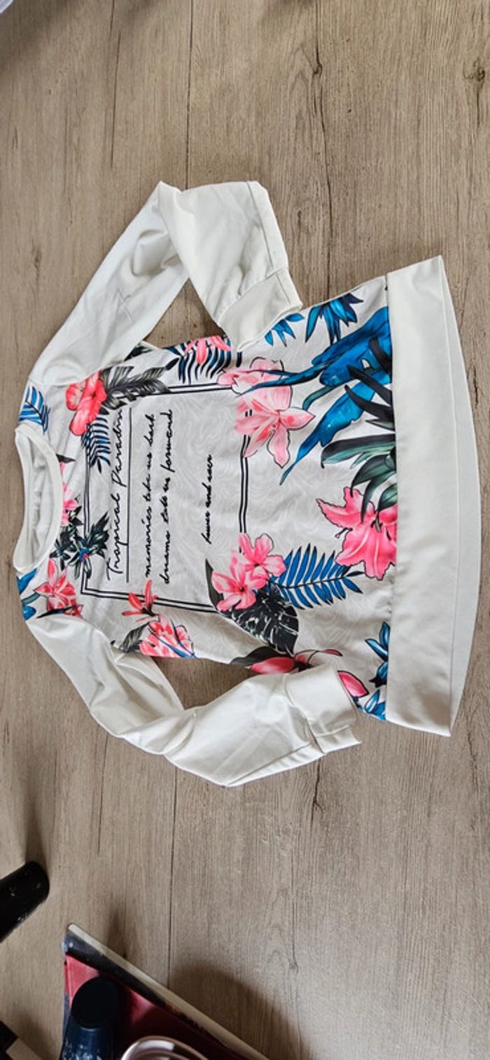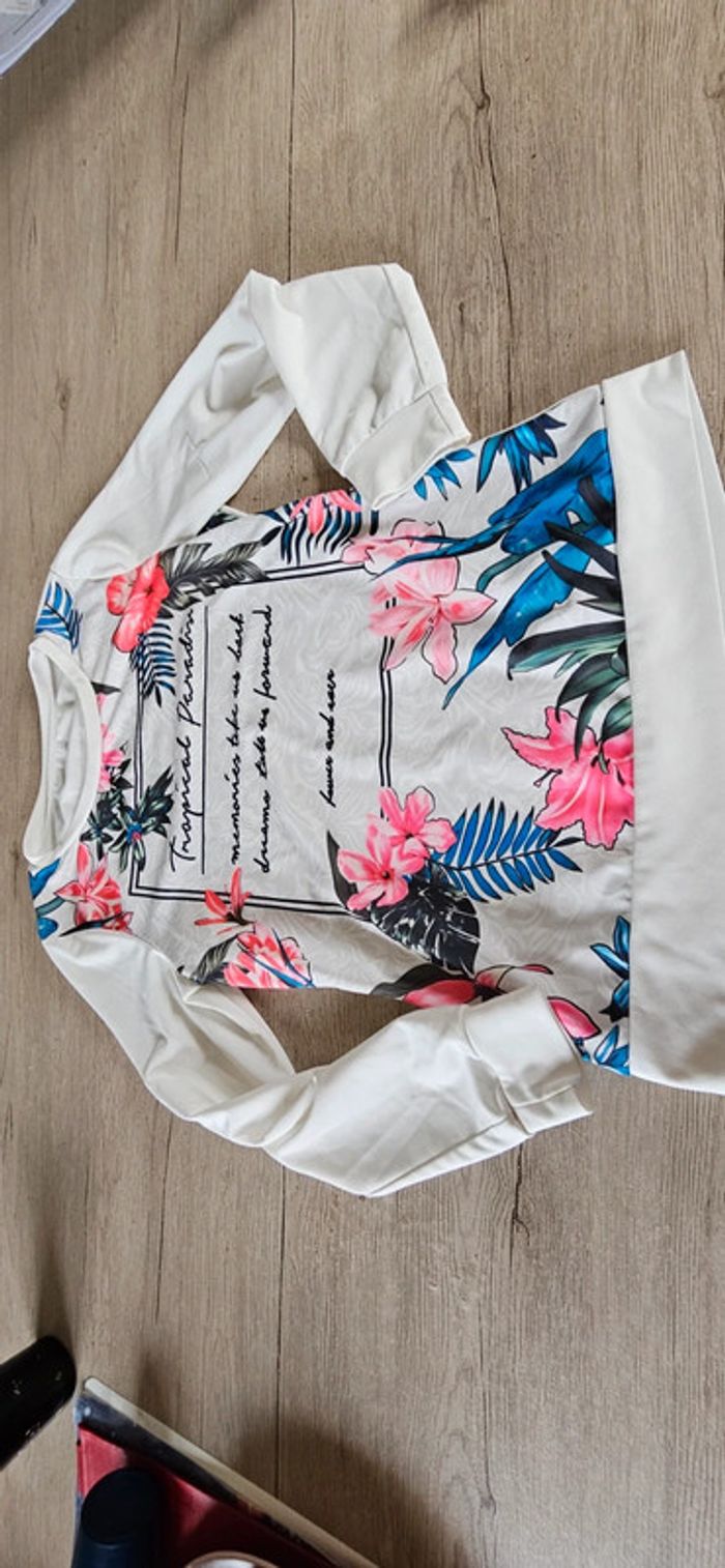Pull léger, manches longues, blanc à dessin, tailleS - photo numéro 5