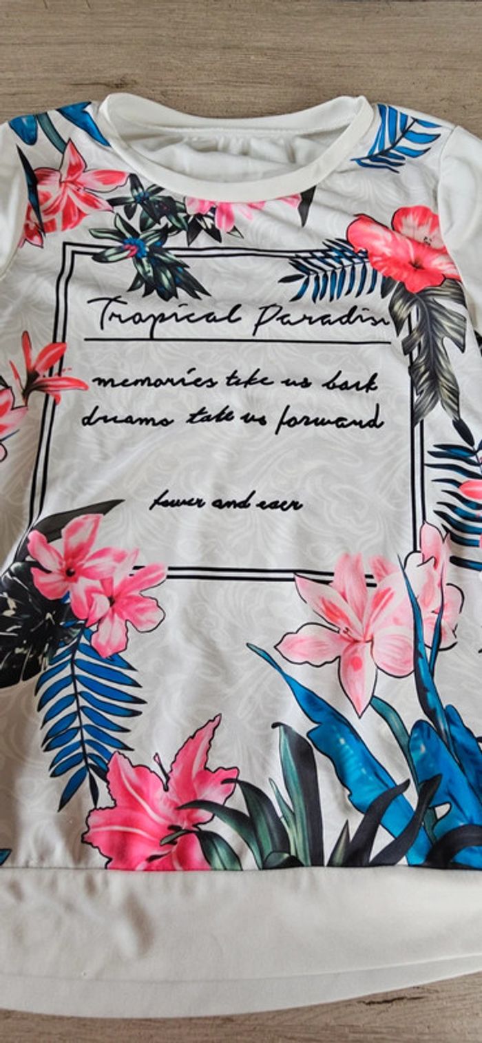 Pull léger, manches longues, blanc à dessin, tailleS - photo numéro 6