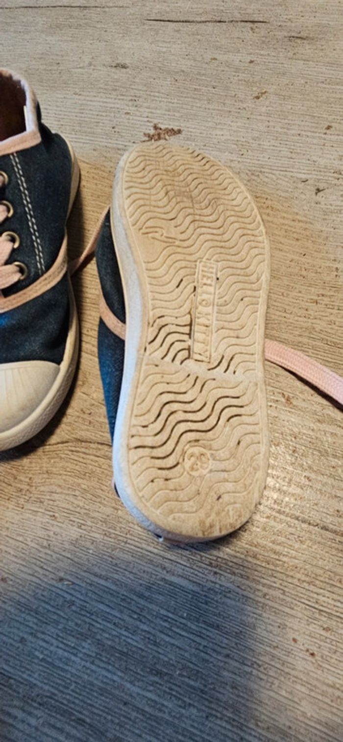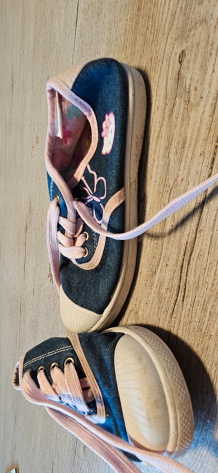 Paire de tennis à lacets. Imitation jean s et rose. Elles n ont pas été beaucoup mises, en bon état mais prévoir une petite semelle intérieure pour plus de confort. Convient pour du 28 ou 29 #deborahtock_chaussures/enfant
