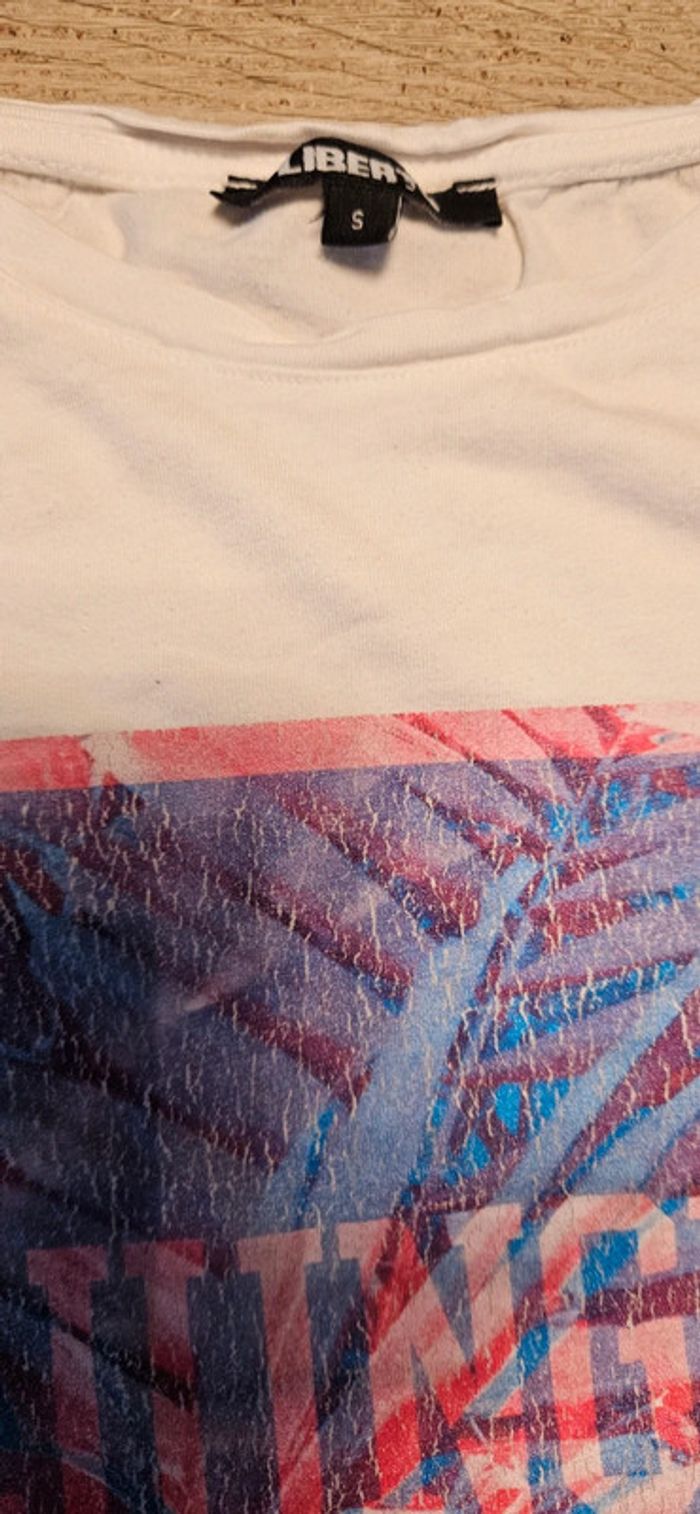 T shirt col rond, manches courtes avec 1 dessin avec effet craquele. Convient bien pour du 14 ans ou du XS/S. Il a été très peu mis #deborahtock_14ans #deborahtock_femmeXS #deborahtock_femmeS/M