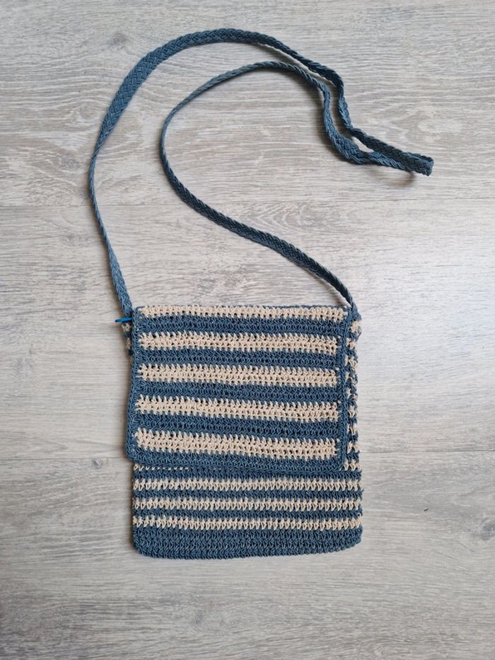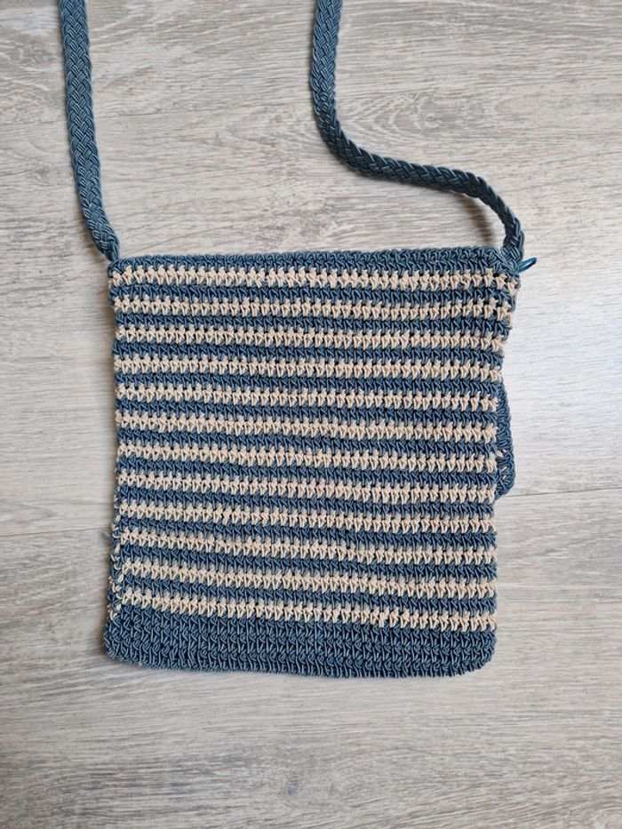 Sac bandoulière bleu et crème - photo numéro 2