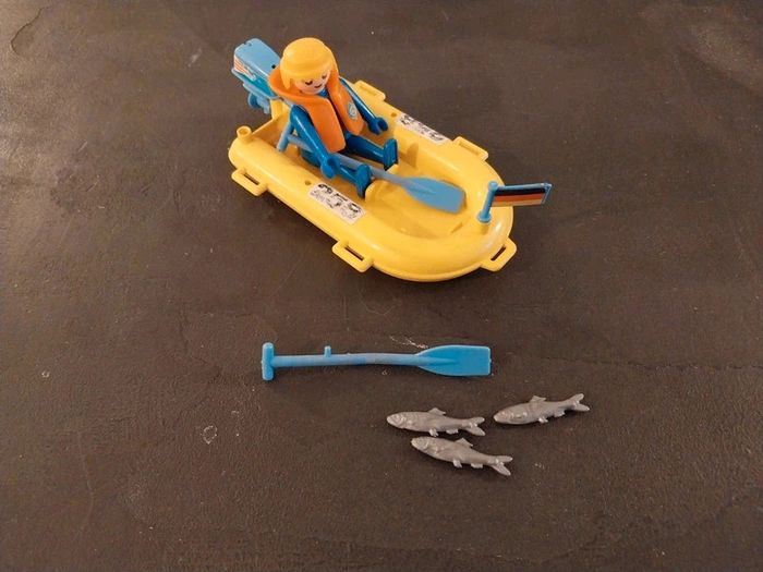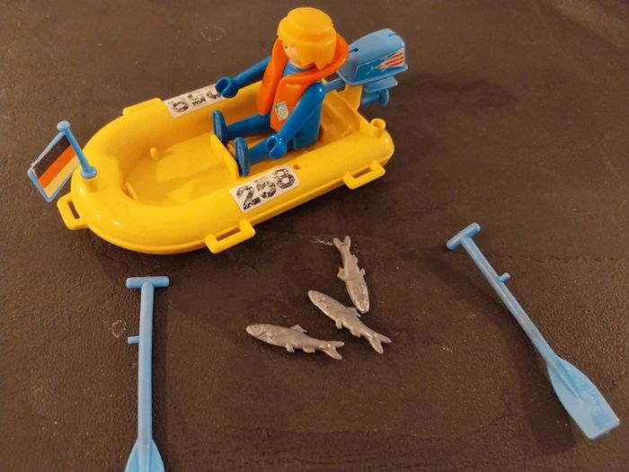 Playmobil année 70 80 Bateaux zodiac jaune pêcheur Incomplet
