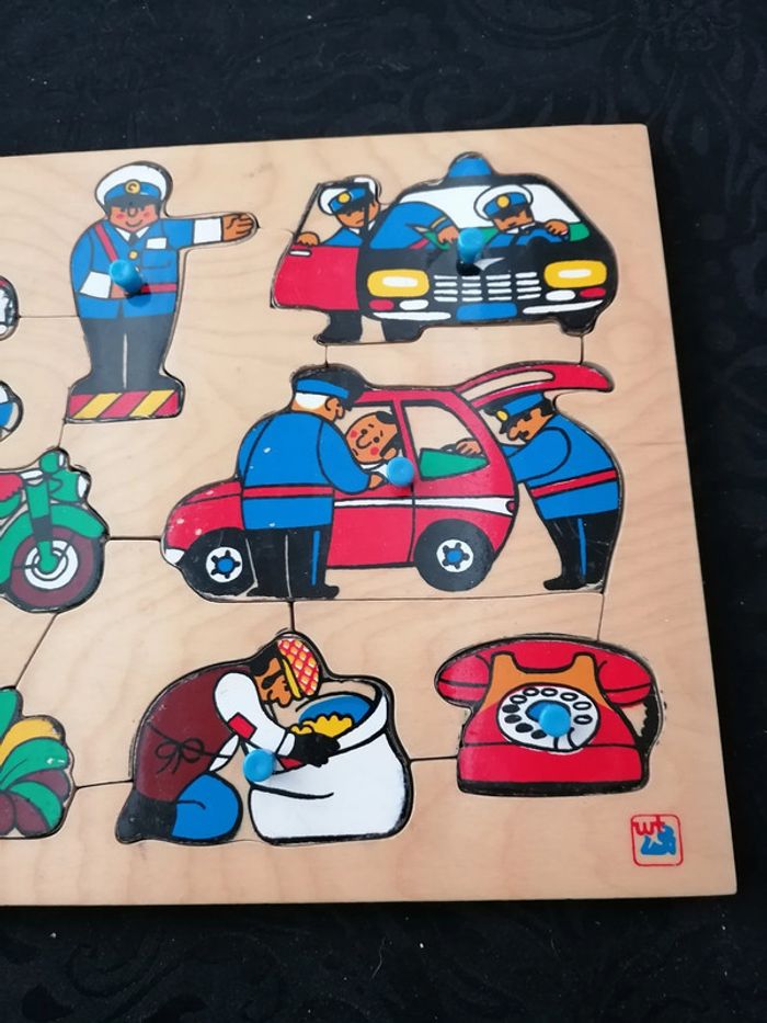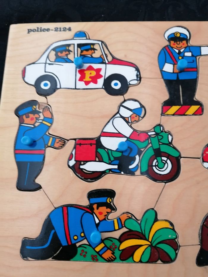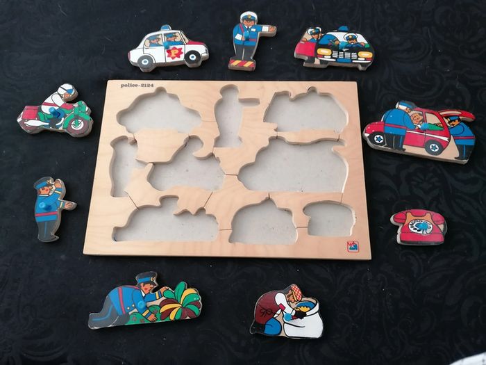 Puzzle en bois vintage Police 2124 En bon état + au vue de l'âge Steinmayer wood toys Lighthouse toys
