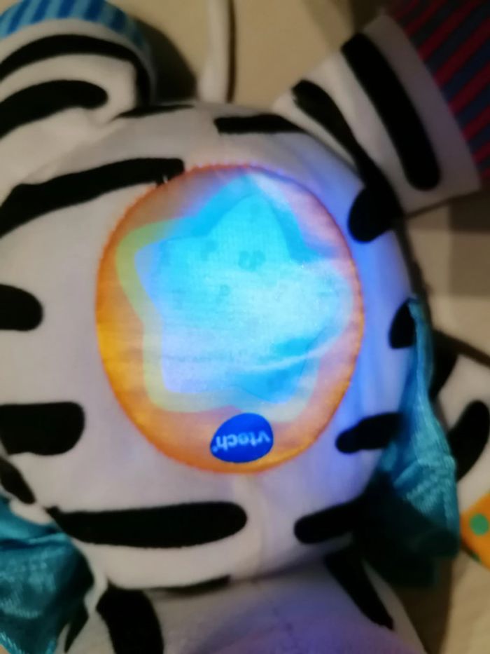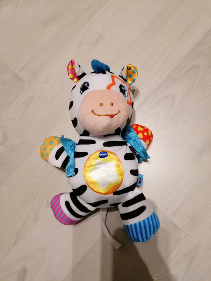 Oscar p'tit zèbre Rockstar vtech Effets lumineux et mélodies et chansons, papier bruissant, motifs et couleurs peps De quoi amuser et éveiller les petits rockeur en herbe Vendu avec piles