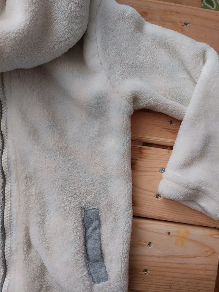 Gilet polaire, doux et chaud Il a eu un accident de parcours et a des taches de transfert de couleur bleu, ça reste assez discret, voir photos Marque Kiabi Taille 3 ans