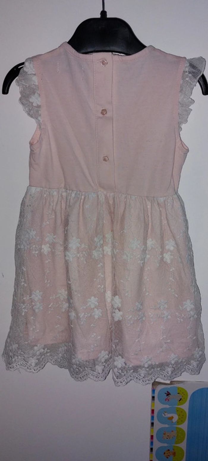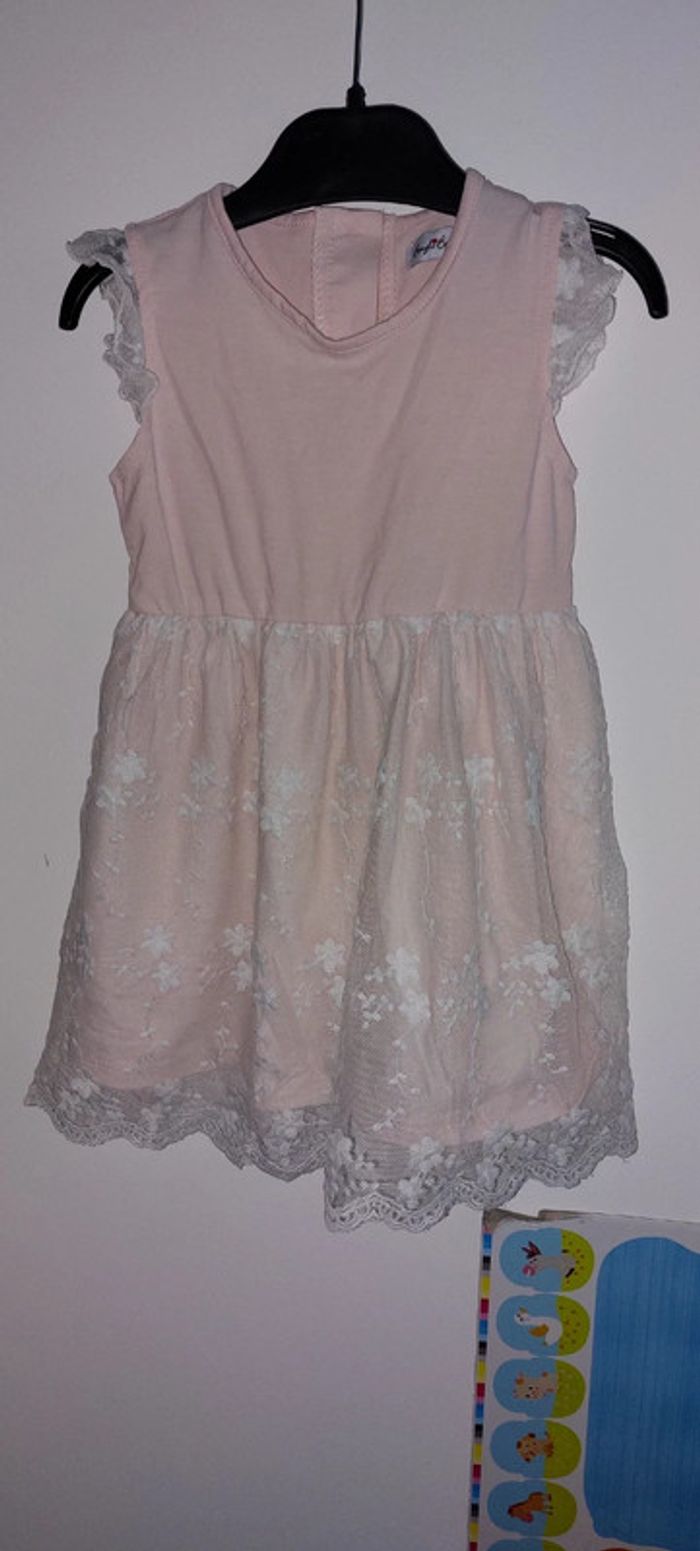 Jolie robe légère Coloris entre rose et abricot Ouverture par bouton haut du dos Quelques bouloches dans le dos Taille 23 mois (taille grand) Marque bougli bougla