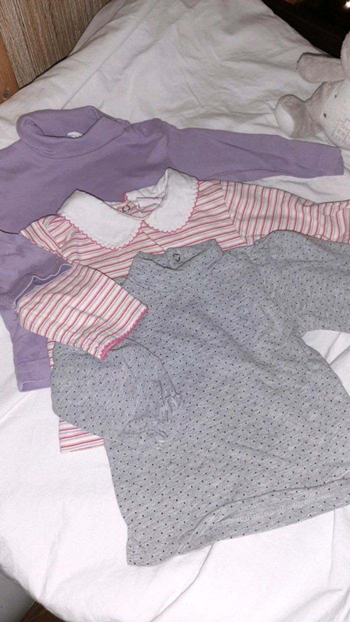 Lot de 3 hauts manches longues avec col Gris marque tissaia Rayé influx Lilas pas d'étiquette Taille 6 mois #chris67860_sixmois