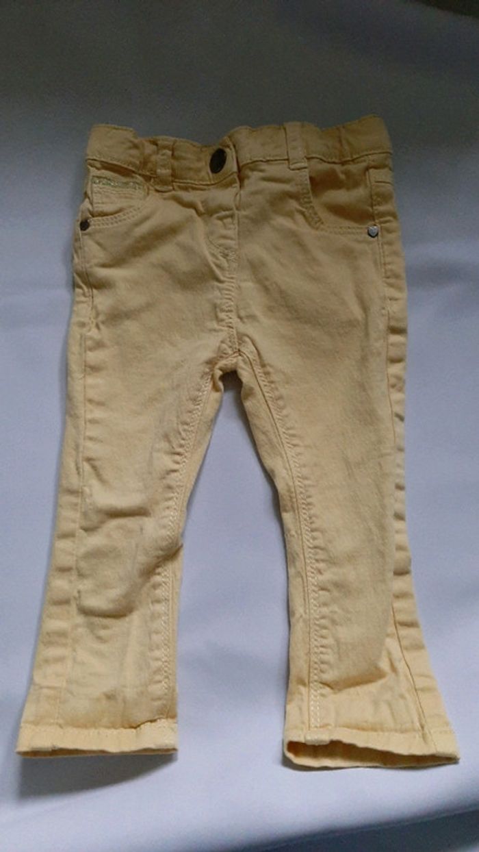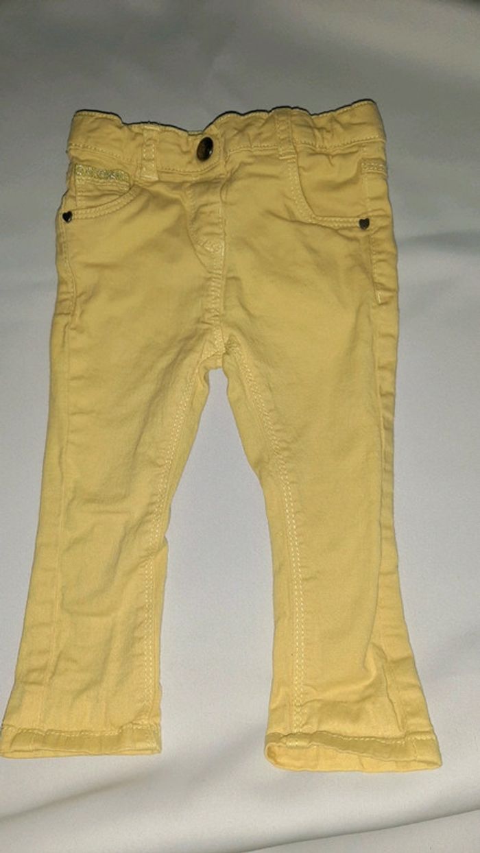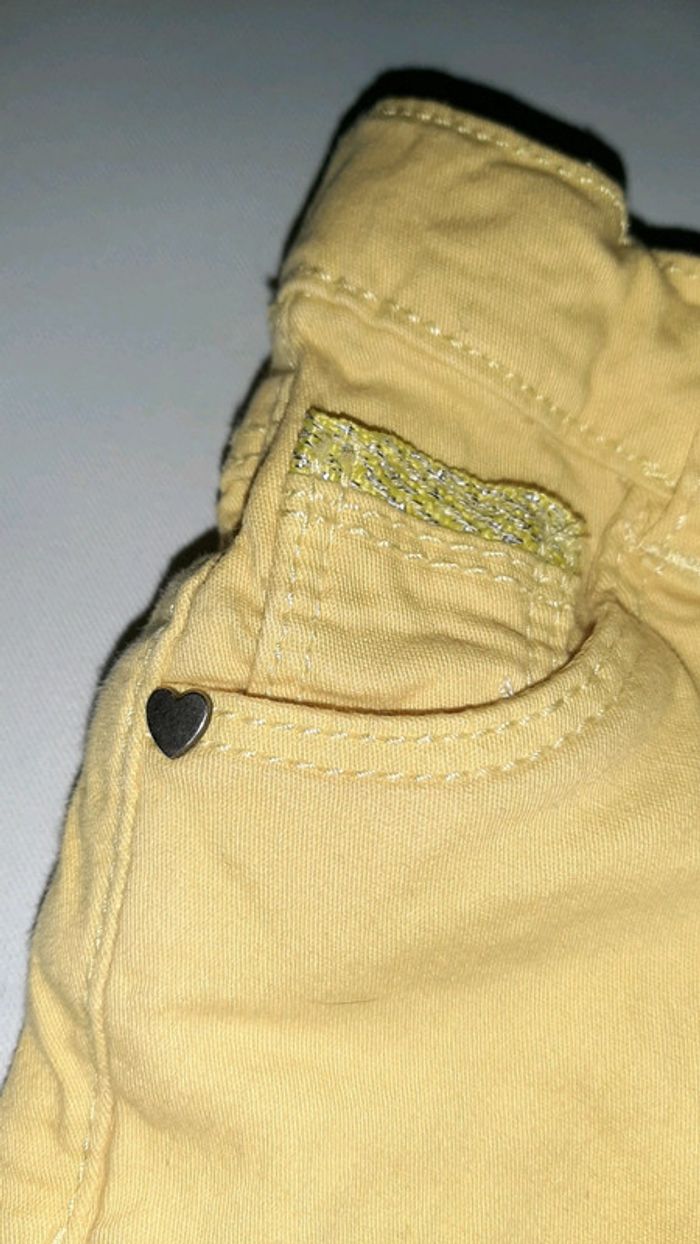 Jean slim jaune Jolis boutons cœur au niveau des poches Taille ajustable Marque tape à l'oeil Taille 12 mois 74cm Peu porté
