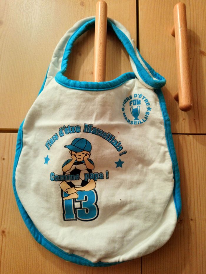 Bavoir fermeture par velcro " fier d'être marseillais" Jamais servi Idéal pour fan de foot Olympique de Marseille #OMbaby