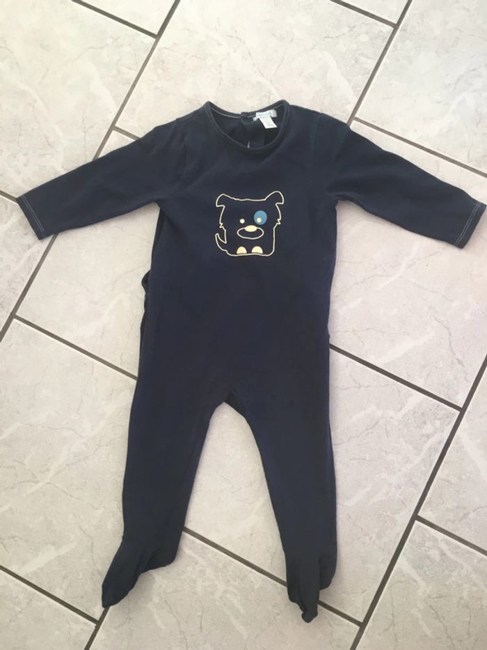Pyjama d’été bleu marine motif chien en très bon état taille 12 mois