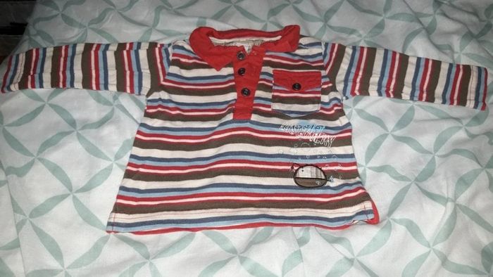 Vends polo rouge rayé beige et marron Marque orchestra Taille 6 mois #juhjuh6mois