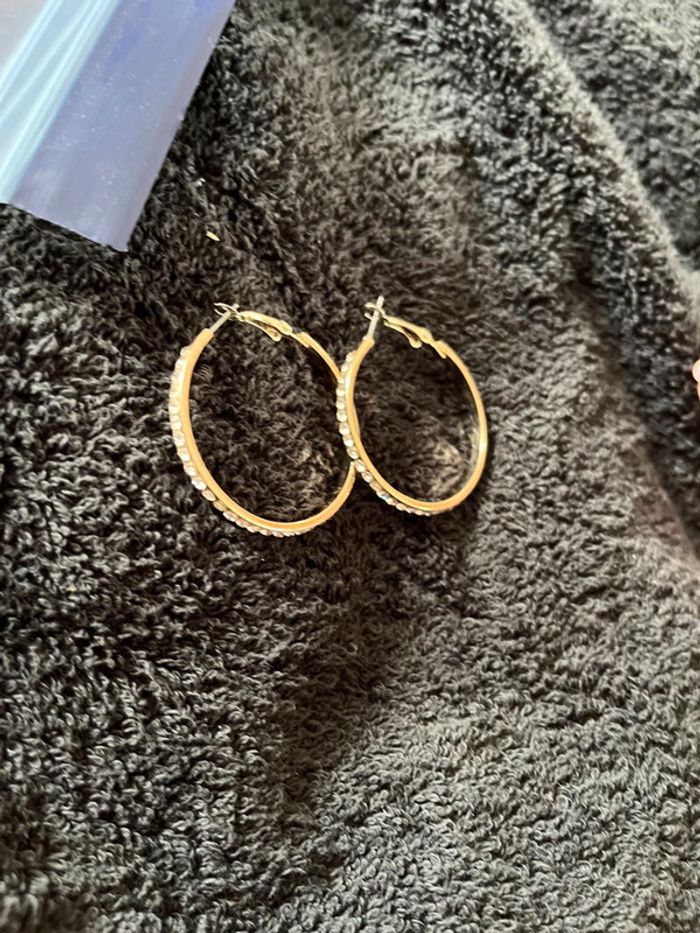 Vends boucles d'oreilles anneaux doré à strass Neuve #juhjuhbijoux