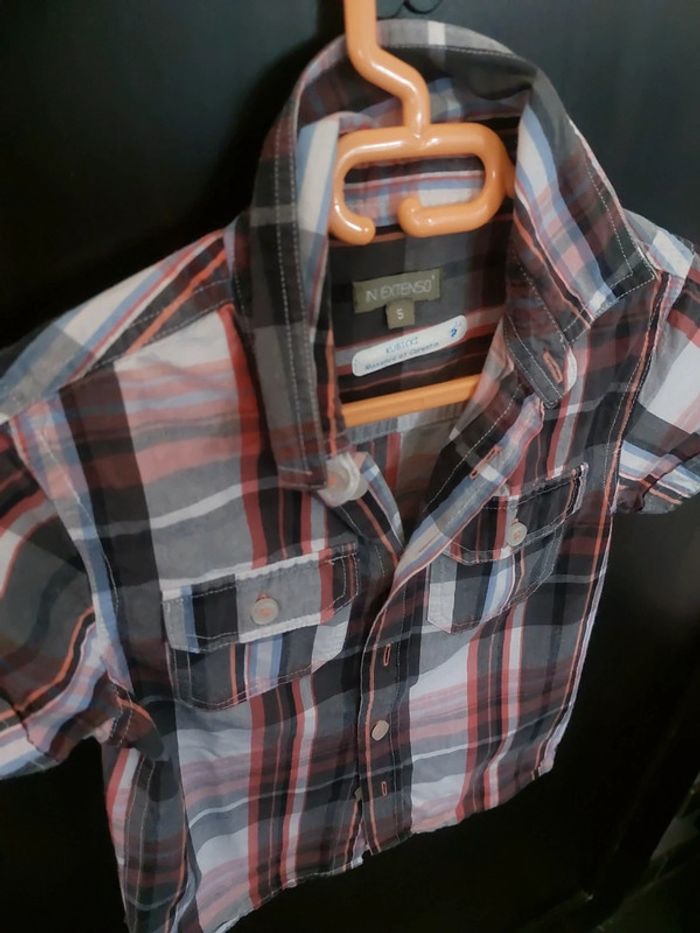 Vends chemise manches courtes A rayures Grise et rouge In extenso 5 ans #juhjuh5ans