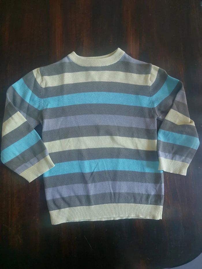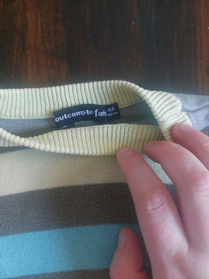 Vends pull rayé Bleu taupe vert anis 4 ans Tout compte fait #juhjuh4ans