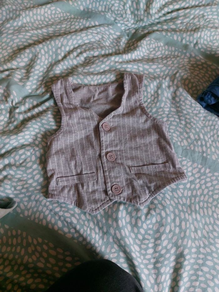 Vends gilet de costume en coton gris rayé blanc 3 boutons Taille 24 mois #juhjuh23mois #juhjuh24mois